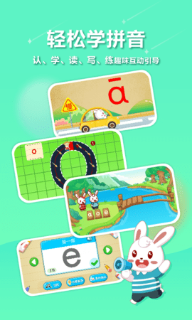 采用趣味交互形式,全方位训练孩子拼音认知、记忆、发音、拼读、书写等能力。