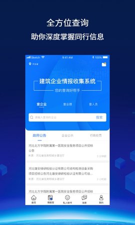 建企查是一款专为建筑行业从业者设计的综合性信息查询平台。用户可以通过该应用轻松获取建筑工程招标信息、在建工程动态及建筑企业的相关信息。它不仅支持根据工程种类、信息类型、地区、资质要求和工程造价等多维度进行精准搜索,还具备订阅推送功能,确保用户及时掌握符合要求的招标信息。此外,建企查还提供官方建筑交流群,促进行业内的互动与合作,致力于提升建筑企业的中标率,帮助用户更高效地获取全国范围内的招标信息。