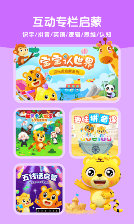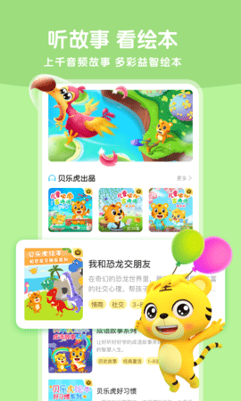 贝乐虎提供了启蒙类内容,如诗词启蒙、美育启蒙、世界名人故事、思维启蒙等,以及音乐剧作品,如贝乐虎超级汽车、贝乐虎神奇恐龙世界、古典音乐启蒙等。