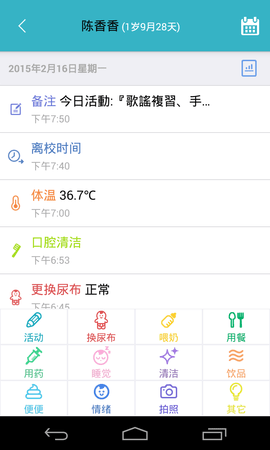 软件具备多种记录功能,能够详细记录孩子的到离校时间、体温以及其他日常生活信息,让老师随时掌握孩子的状态。