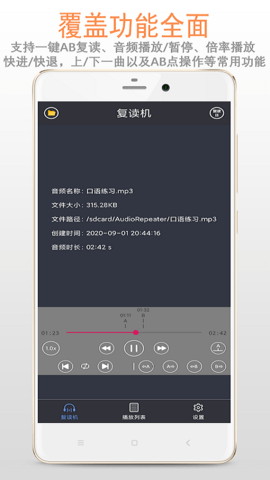 天天复读机支持多种常见音频格式,如MP3、WAV等,用户可以放心使用各种音频文件进行学习。