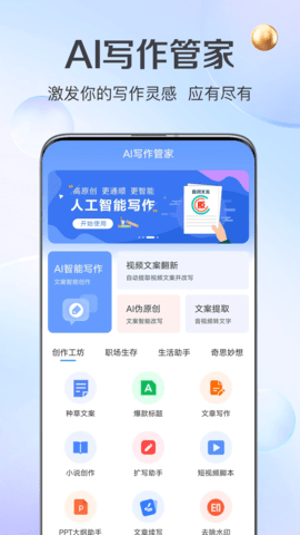 AI写作管家是一款专为写作者设计的智能写作软件,致力于提升用户的创作效率。该软件通过先进的人工智能技术,提供多种写作工具和模板,帮助用户在短时间内完成高质量的文本创作。无论是学生、职场人士还是自由职业者,AI写作管家都能满足不同用户的需求,助力他们在创作过程中获得更多灵感和创意。