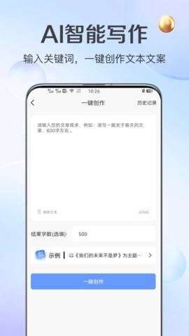 软件内置一键智能写作功能,用户只需输入需求,系统便可自动生成相关文案,极大简化了写作流程。