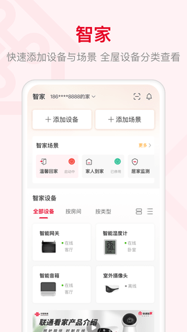 联通智家为用户提供了一个智慧家庭的整体解决方案。