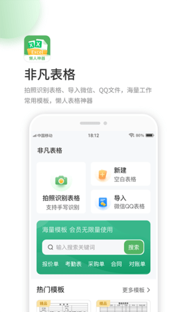 非凡表格是一款功能强大的文档表格应用,让您随时随地都能轻松创建、查看、编辑和分享EXCEL表格。它提供了通用的excel模板,特别适合在手机上使用,帮助您快速制作各种类型的表格。通过扫描文件中的表格区域,您可以一键将表格转化并分享给您的微信或QQ好友。海量的表格模板涵盖了生活、商业、活动、学习等多种场景的使用需求,让您能够随时随地轻松制作各种表格,这些表格看起来既专业又美观。