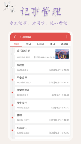 用户可以通过微信、QQ一键登录,即使换手机也不会丢失记事、提醒信息,保障用户数据的安全。