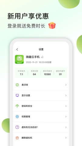 微趣云手机还拥有更多强大的功能,支持安卓云手机的新版本,实现应用的双开多开,性能强劲,与真机相媲美,让用户可以轻松畅玩各种大型手游,无压力地享受游戏乐趣。