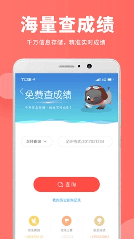 通过输入赛鸽的足环号码,轻松查询赛鸽的所有赛事成绩,便于及时了解鸽子的竞技状态。