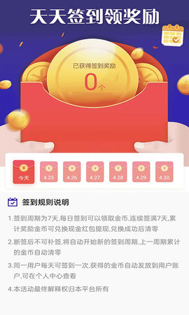 软件提供了签到奖励机制,用户只需每天签到即可获得金币和现金,激励用户持续使用该软件。