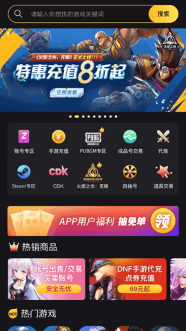 Bigplayers不仅是一款交易平台应用,更是一款内容涵盖手游、端游、Steam等游戏全品类服务的APP。