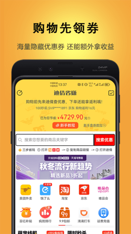 通过迪倩,用户可以轻松找到适合自己的优惠信息,省钱又省心地购物,实现了购物省钱赚钱的双重目的。