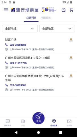 消费者还可以通过应用查看圣安娜饼屋各分店的位置和营业时间,方便前往购买或取货。