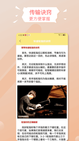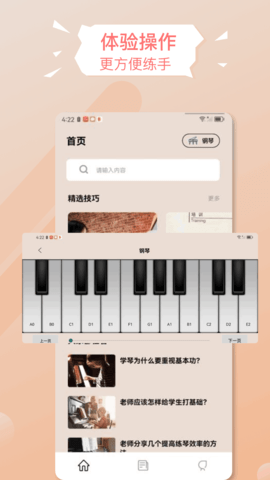 手机版电子琴可以帮助零基础的入门者快速掌握基本的钢琴知识和技巧。通过软件上的教学视频和教程,用户可以学习如何正确摆姿、手指的运动方式、音阶和音程的练习方法等基础知识。软件提供了多种不同难度和风格的曲目供用户练习,帮助逐步提高弹奏水平。