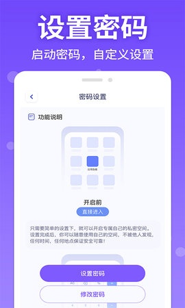 用户可以设置不同的隐私保护方式,包括密码保护和伪装图标,灵活应对不同的使用场景。