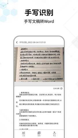 用户可以将识别后的文件以word、excel、txt、PDF格式进行分享,也可以通过微信、qq等方式一键分享和导出。