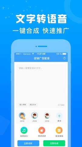 用户还可以利用文字转语音功能进行广告配音,只需一键合成即可生成配音作品。