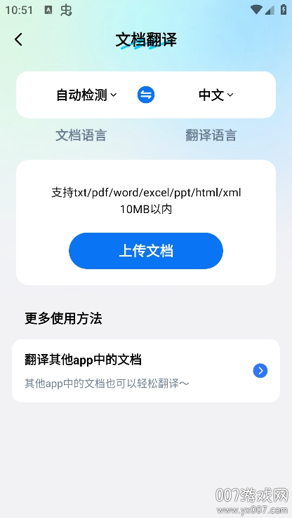 2、APP还提供了文档翻译服务,支持多种文件格式,方便用户处理工作中的翻译任务。