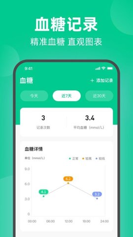1、记录功能:用户可以记录血糖、血压等重要健康信息,确保数据的准确性和及时性。
