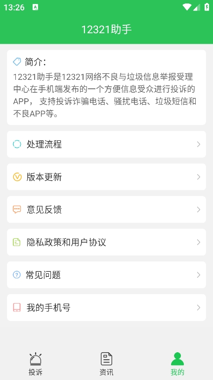 12321助手app不仅提供了便捷的举报功能,还具备了查询和反馈机制。