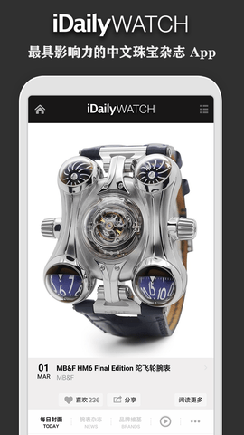 每日腕表封面栏目每天精选一款大师级腕表,配以3000px高清细节图和专业评鉴,帮助用户全面了解腕表的独特魅力。
