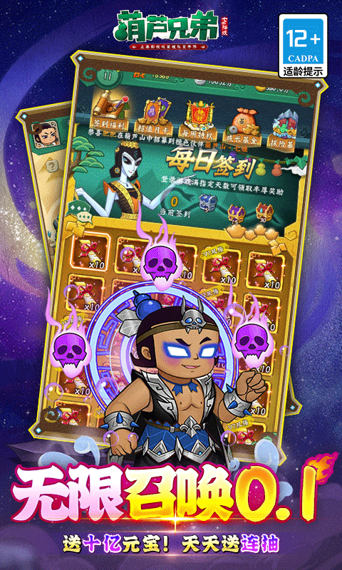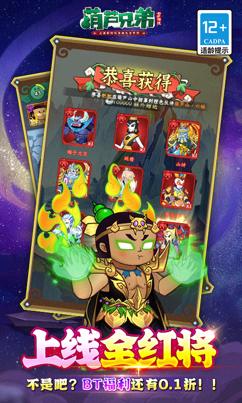 2、创建角色立即赠送全红将,还有葫芦七子随心领!