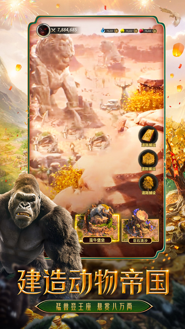 在野兽领主新世界中,玩家将通过探索和建设来逐步扩大自己的领地。派遣狐猴等野兽进行资源的收集和建设,建立起安全的栖息地。通过合理的资源管理,玩家可以提升领地的繁荣程度,吸引更多的野兽加入。