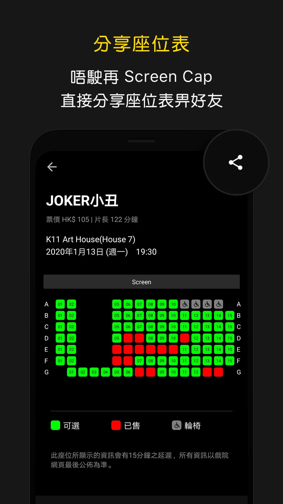 实时座位表功能,帮助用户在购票前清楚了解各大影院的座位情况,确保最佳观影体验。