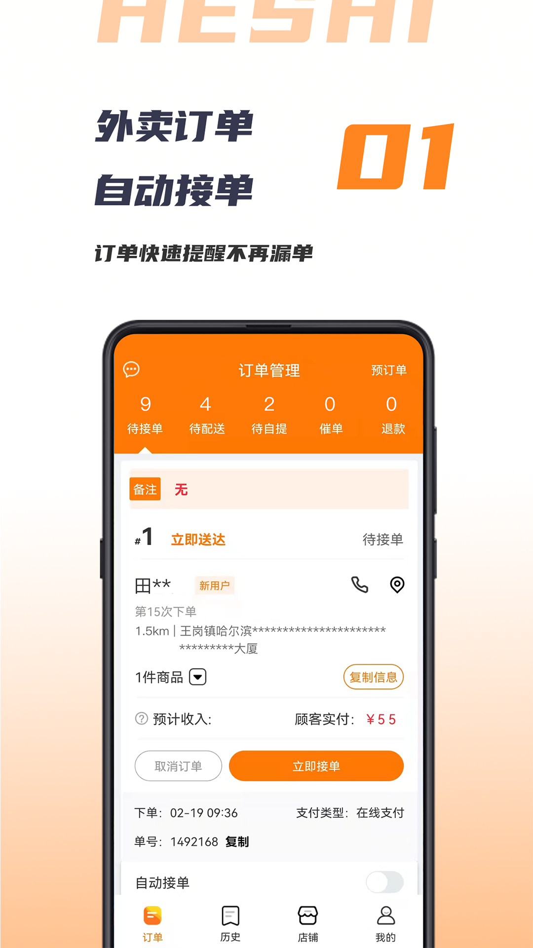 自动接单:系统可根据设定规则自动接收订单,减少商家的人力负担。