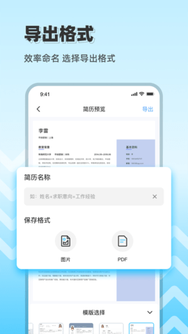 用户可以随时随地只需要一部手机或平板电脑,就可以完成简历的制作。