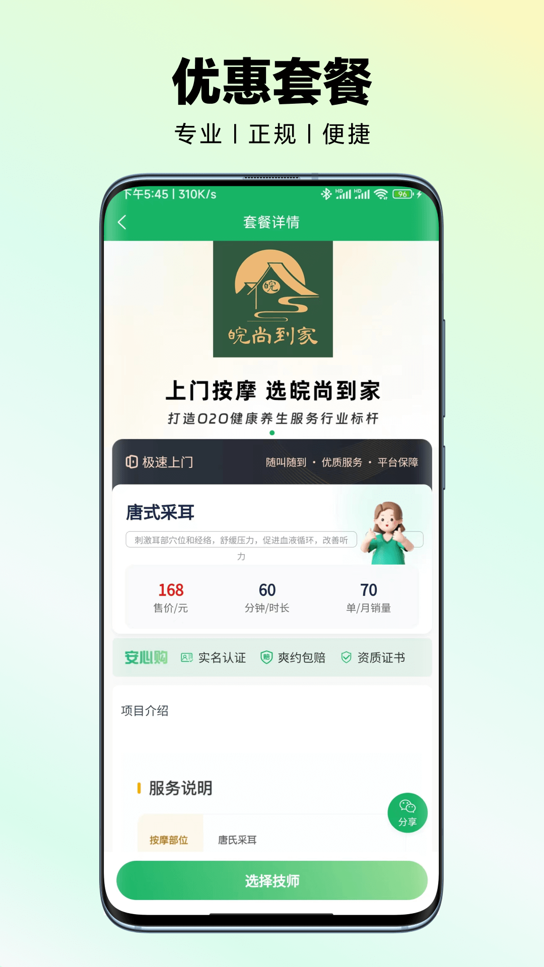 皖尚到家是一款专注于提供上门服务预约的平台,为用户带来便捷的按摩、推拿、养生、SPA等多种专业服务。通过简化预约流程,在繁忙的生活中轻松享受放松与养生的体验,解决了传统服务场所排队等候、时间不灵活的问题。