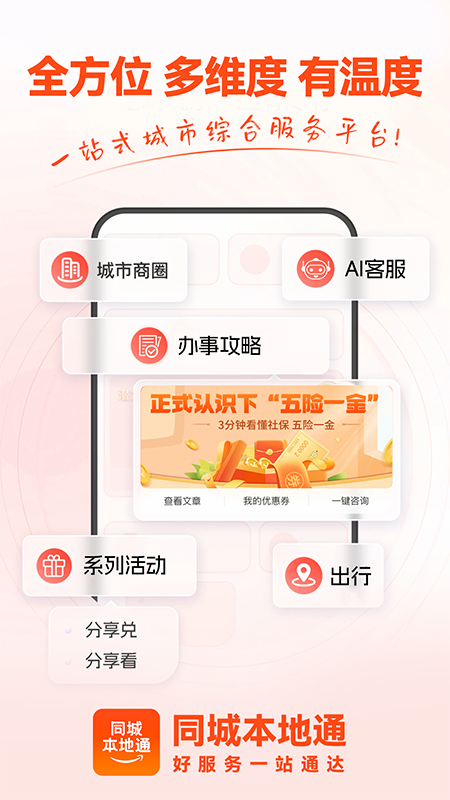 同城本地通是一款专为城市居民设计的综合服务软件,为用户提供便捷的生活信息和高效的办事指南。通过强大的AI问答系统,轻松获取政策法规、办事流程以及生活小窍门等多方面的信息,解决日常生活中的疑问与困扰。无论是新市民还是老居民,使用同城本地通都能享受到高效、贴心的服务。