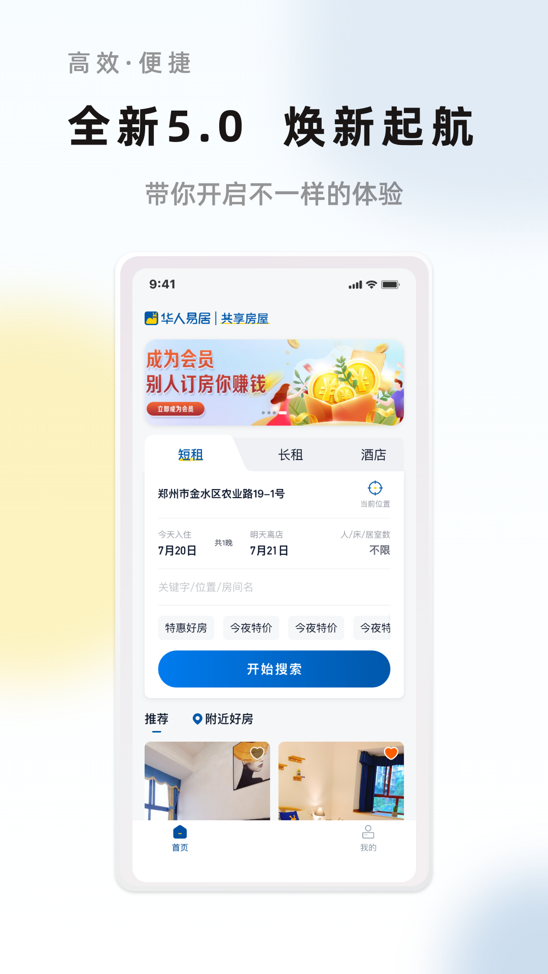 华人易居是一款创新型的城市房屋智能共享平台,为用户提供便捷的自助订房体验。通过引入先进的智能硬件和系统,华人易居在住宿流程、能效控制和交互娱乐等方面进行了深度优化,形成了线上房客与线下房屋的紧密连接。用户不仅可以自助完成房间预订,还能享受无人打扰的极致自由,随时随地选择适合自己的居住空间。