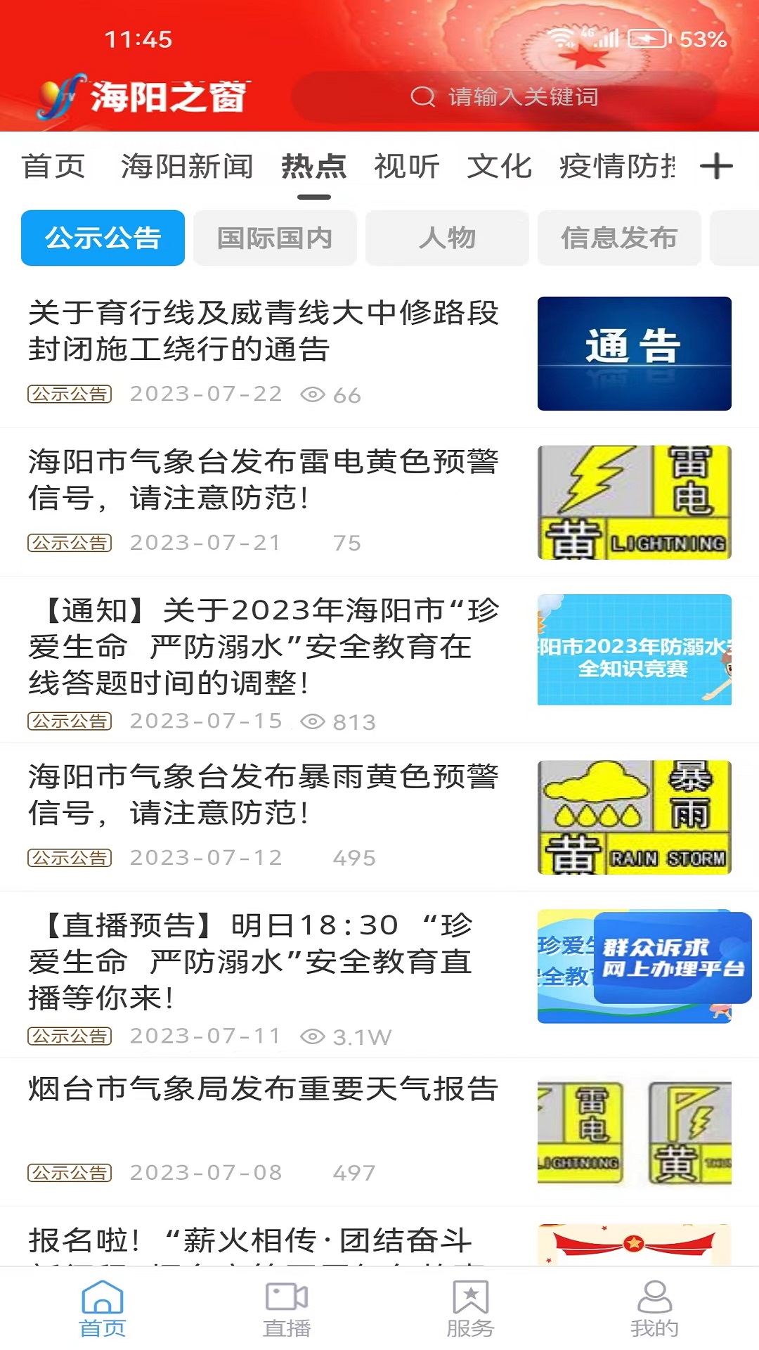 海阳之窗是一款由烟台海阳市融媒体中心推出的综合性客户端,为用户提供丰富的政务信息和便民服务。通过整合各类资源,平台不仅能够发布最新的新闻资讯,还为市民提供便捷的网上政务服务,帮助用户轻松获取所需信息与服务,提升生活质量。