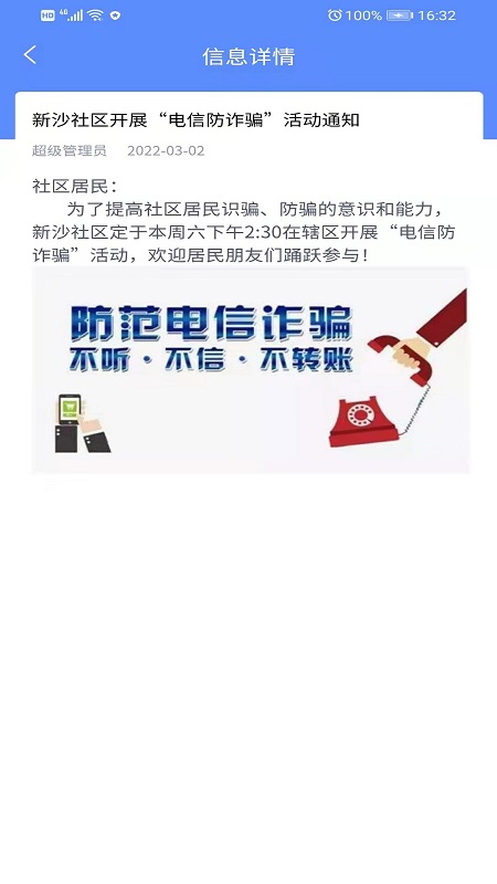 辖区警员通过软件发布治安动态,居民可随时获取最新的治安信息,提升安全意识,减少不必要的恐慌。