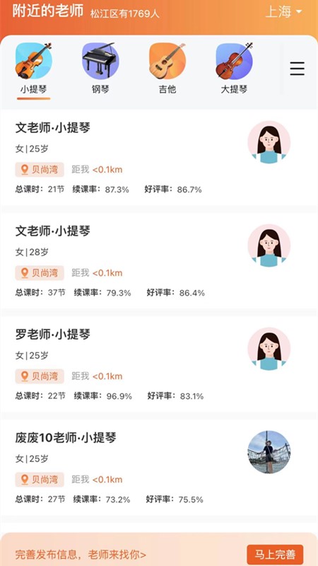 通过社区定位,用户能够找到附近的艺术老师,节省了大量的通勤时间,提升了学习体验。