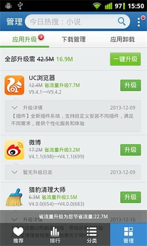 金山手机助手支持应用管理,方便地查看和管理已安装的应用,及时卸载不再使用的程序。
