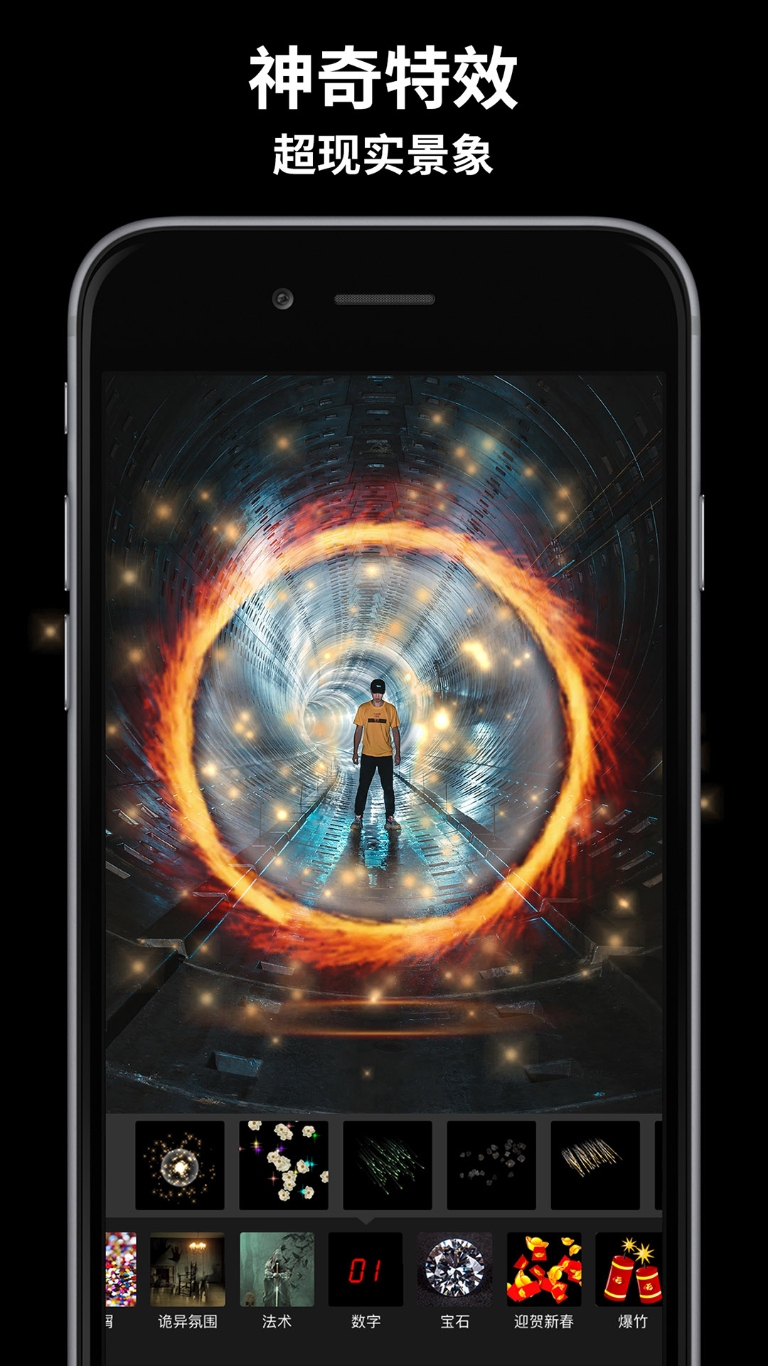 全新分散粒子功能可以让用户一键添加科幻粒子特效,将普通照片瞬间升级为电影级大片。