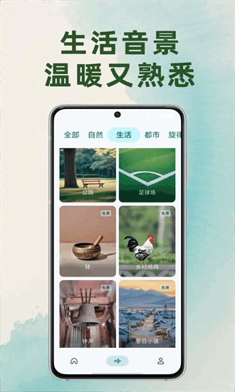 它为用户提供了一个多元化的音景体验,涵盖了自然音、生活音和轻音乐,让放松变得更加简单。