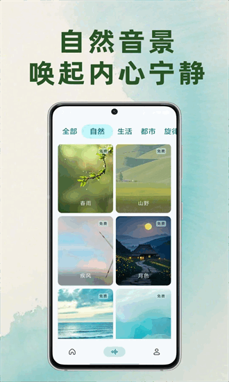 应用提供多样化的音景选择,根据自己的心情和需求自由切换,体验不同的放松效果。