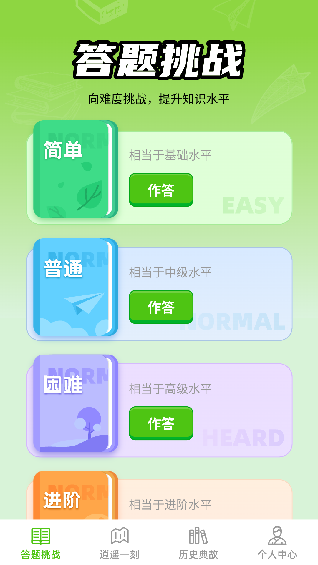 1. **答题挑战**:逍遥答题提供四种不同难度的题目,根据自身的答题能力进行选择,涵盖了文化、历史、科技等多个领域,帮助您在挑战中不断提升知识水平。
