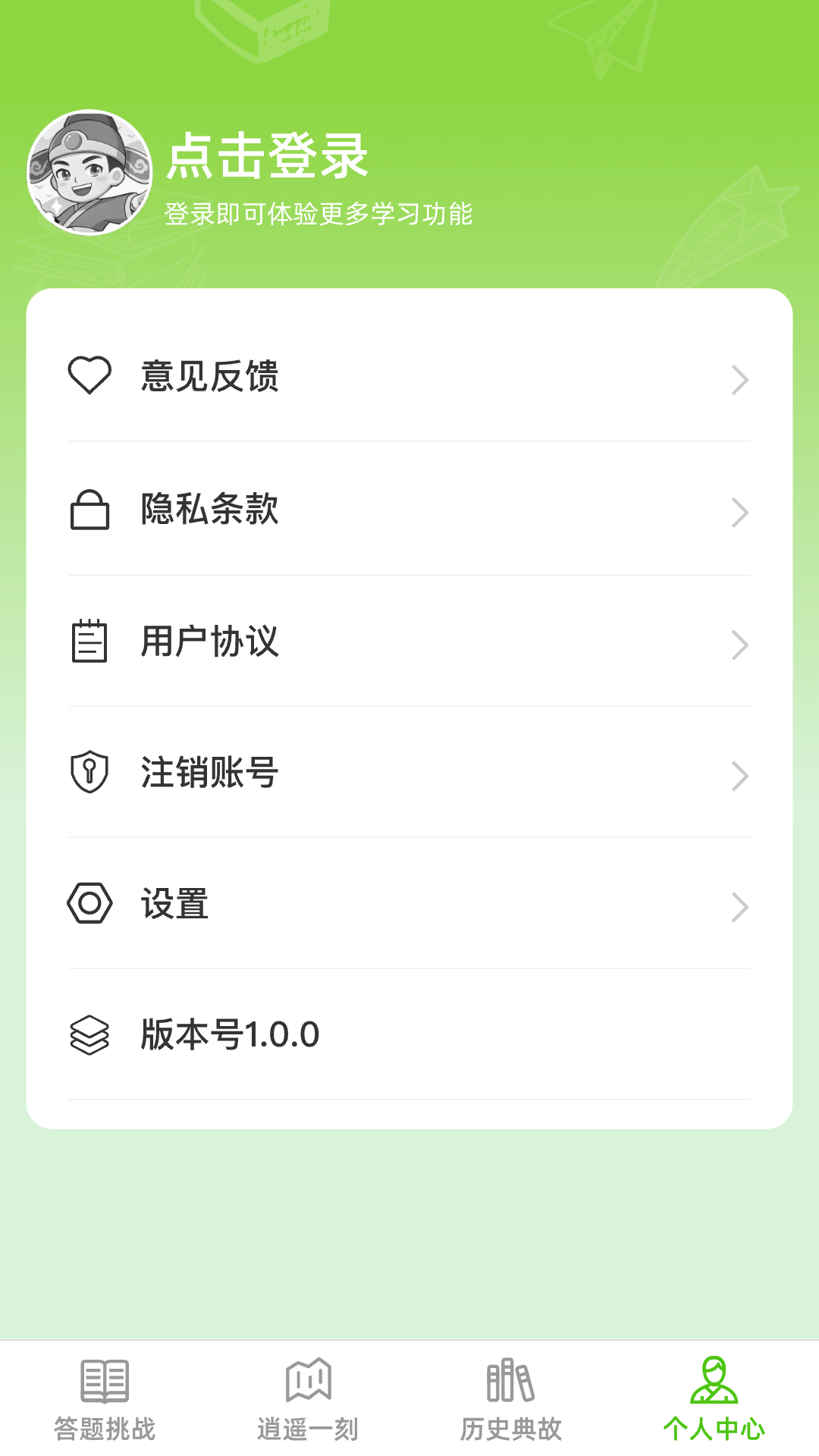 3. **心理解压功能**:逍遥答题特别设置了逍遥一刻功能,通过心灵鸡汤和解压语句帮助用户缓解压力,放松心情,提升生活质量。