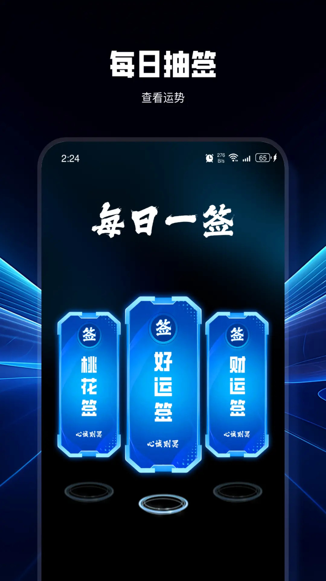 每日抽签:通过每日抽签功能,轻松获得运势指引,帮助自己在生活和工作中做出更明智的决策。有趣的互动方式,既能增添生活乐趣,也能带来积极的心态。