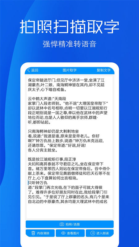 3. 拍照取字功能使用智能OCR技术,能够精准识别图片中的文字,用户只需拍照即可一键复制并保存,极大地方便了文字录入。