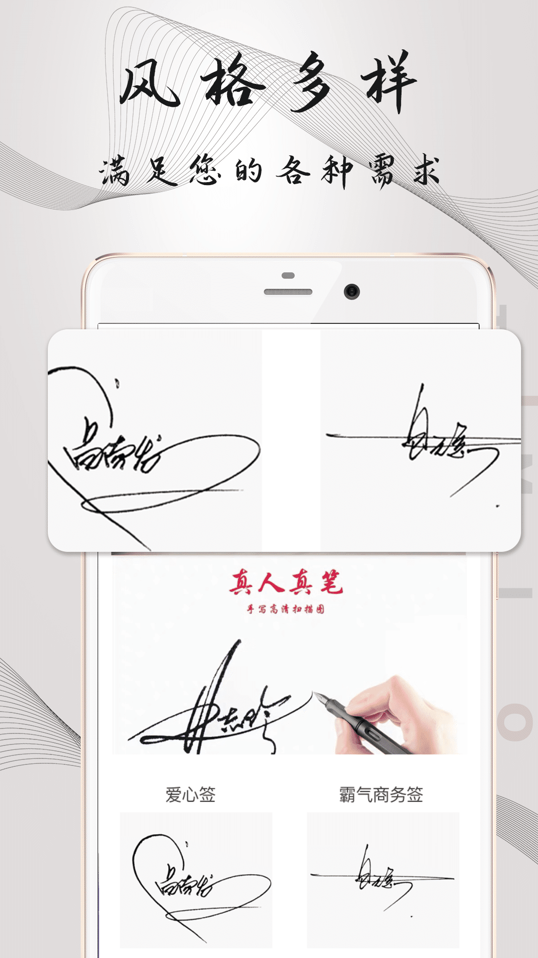 1. 字体丰富,风格多样。软件内置了商务签名、总裁签名、明星签名、极简签名、可爱签名等多种风格,根据自己的需求和场合自由选择,确保每一个签名都能完美契合个人形象。
