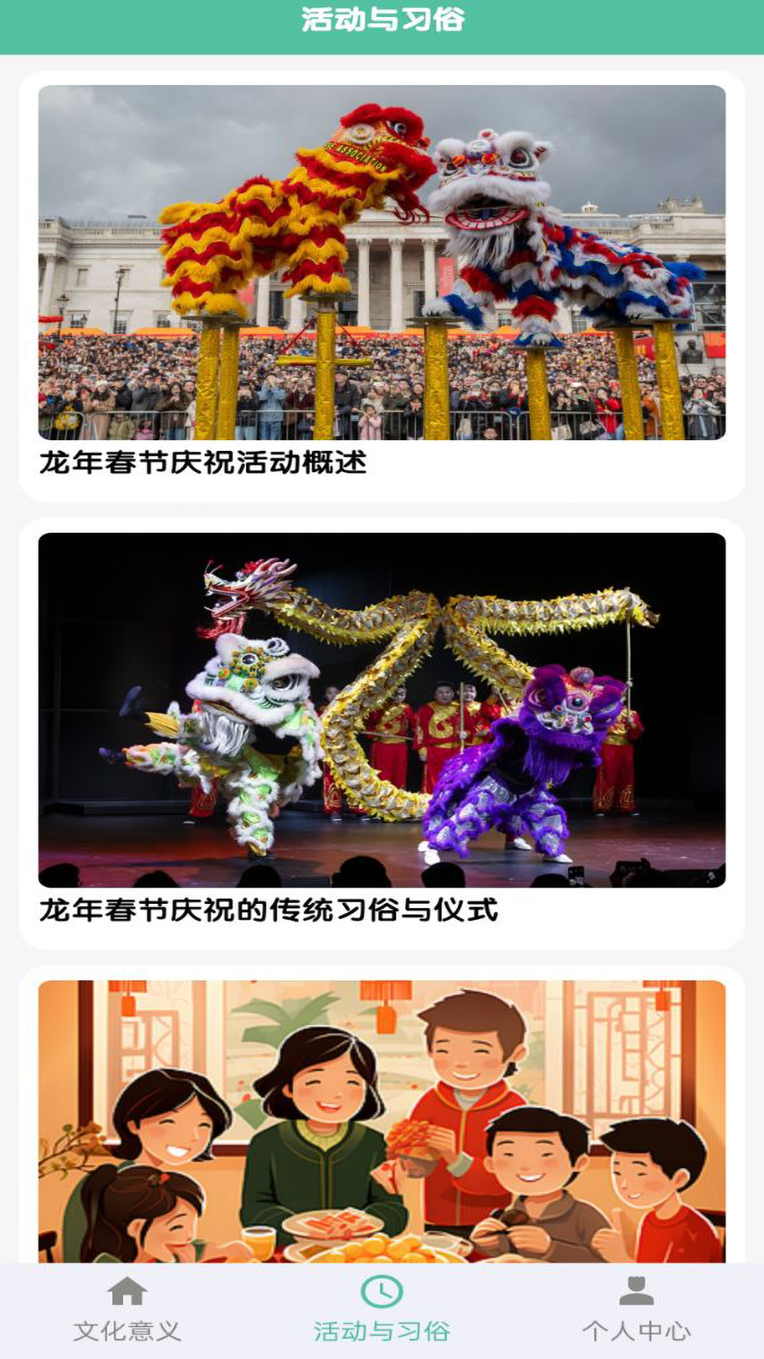 2. 传统习俗:软件详细介绍了与龙年相关的传统习俗,让用户在日常生活中能够更好地融入这些文化元素,增强文化认同感。