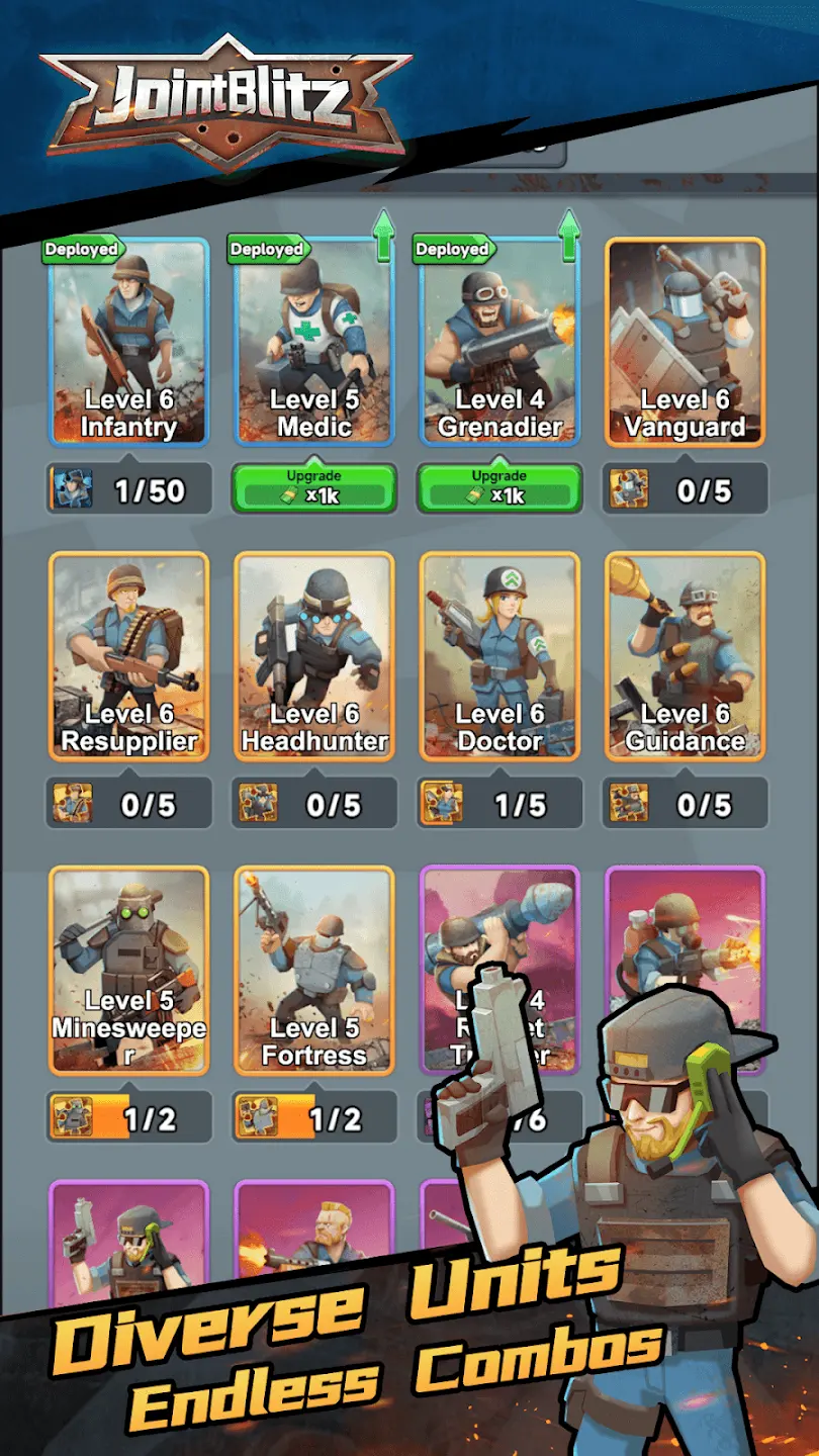 3.多样化的兵种与战术:游戏中玩家可以部署数十种特种兵种,包括重型坦克、狙击精英和无人机群等,每种兵种都有其独特的战斗风格和战术优势。结合数百种战术布局,玩家可以根据战场形势灵活调整自己的阵容,创造出各种创意策略。