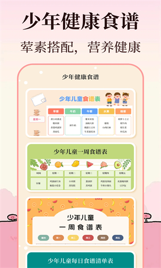 4. 健康饮食教育:软件提供少年健康食谱,帮助孩子们了解营养与健康的重要性,培养他们科学合理的饮食习惯。