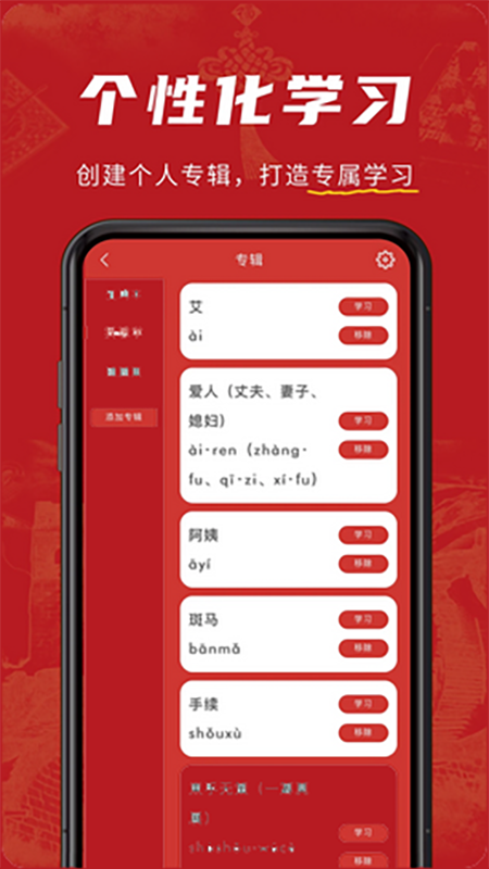 4. 创建和管理个人专辑,将学习过程中重要的词汇和短语整理成专辑,便于随时复习。