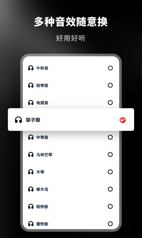 架子鼓节拍器内置多种鼓声,您可以在设置中选择自己喜欢的音色,增加练习的乐趣。