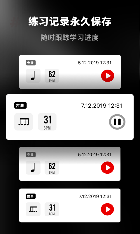 3. 节奏训练模式:内置多种节奏训练模式,帮助用户在不同的节奏下进行练习,提升节奏掌控能力。